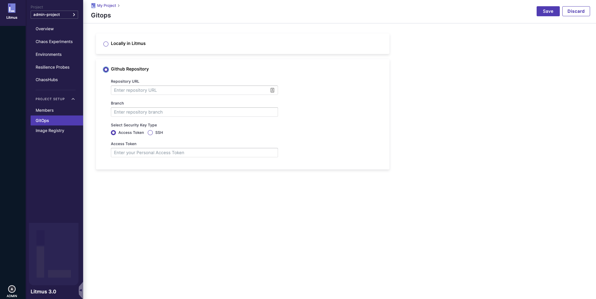 - Login to ChaosCenter and navigate to GitOps (Project Setup > GitOps on the left nav).